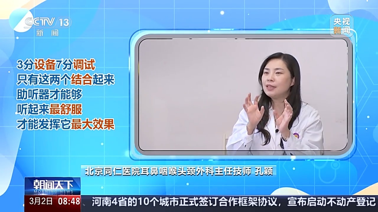 北京同仁医院耳鼻咽喉头颈外科主任技师 孔颖:我们常常跟患者讲3分设备、7分调试,那么只有这两个结合起来,你的助听器才能够让你听起来最舒服,才能发挥它最大的效果。