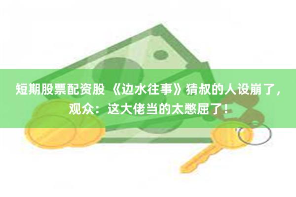 希望猜叔在接下来的剧情里短期股票配资股,可以支棱起来,做点黑老大该做的事情,有点黑老大该有的样子,别再处处受气,连发火也只敢冲自己手下发了。